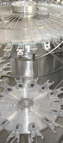 適合產品:果疏汁、茶飲料、功能性飲料、乳飲料等; ☆采用三合一機、四合一機(帶消毒功能),灌裝溫度85-92℃ ; ☆所以機型臺面全部采用過孔拉伸技術,徹底做到零滲漏; ☆采用風送道與進瓶撥輪直連技術,瓶型更換方便; ☆瓶子傳輸采用全程卡瓶頸技術,變換瓶型無須調整設備高度; ☆特殊設計的不銹鋼沖瓶機瓶夾結實耐用,不接觸瓶口螺紋部位,避免瓶口二次污染。